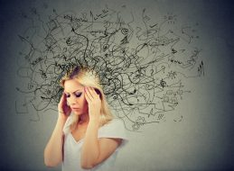 Thoughtful blonde woman with a mess in her head